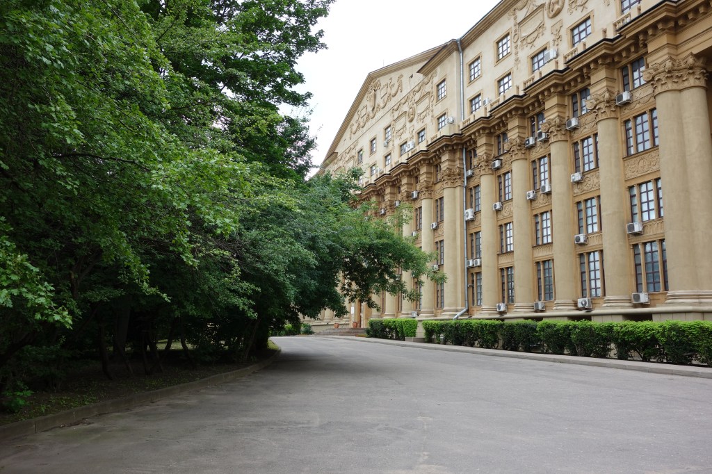 Тот самый Политехнический институт из фильма «Операция «Ы» и другие приключения Шурика», только деревья с тех пор стали большими и всё вокруг немного обветшало. На самом деле это Институт элементоорганических соединений имени А.Н. Несмеянова Российской академии наук. Если кратко, то это про химию и полимеры.