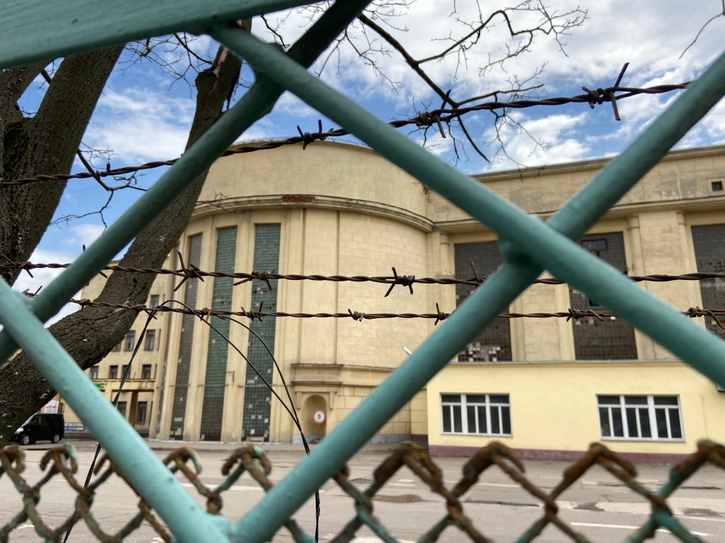Еще одно прекрасное здание за забором, на этот раз с колючей проволокой. К сожалению или к счастью, оно до сих пор используется по назначению (как автобаза), хотя здесь можно было бы сделать пространство для выставок. Считается, что оно выполнено в стиле советского ар-деко (симметрия, монументальность, намёк на колоннады).