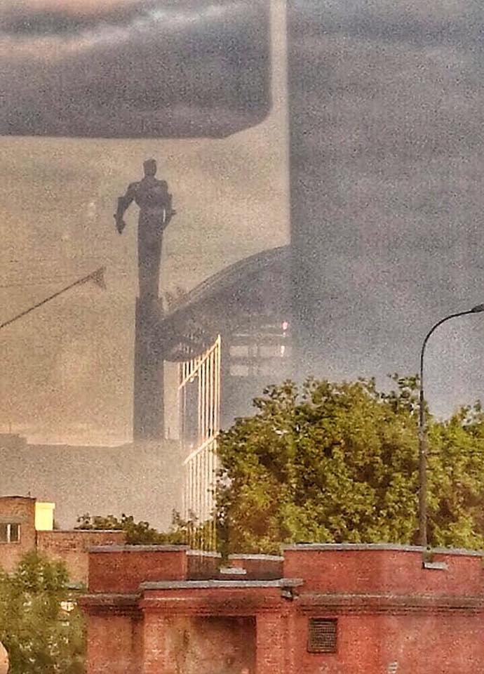 Впечатляющий дом с фигурами мужчины и женщины (вероятно, рабочего и колхозницы), известен по фильму «Покровские ворота». Отсюда открываются виды на всё вперемешку – старый город, церкви, небоскрёбы Москва-Сити.