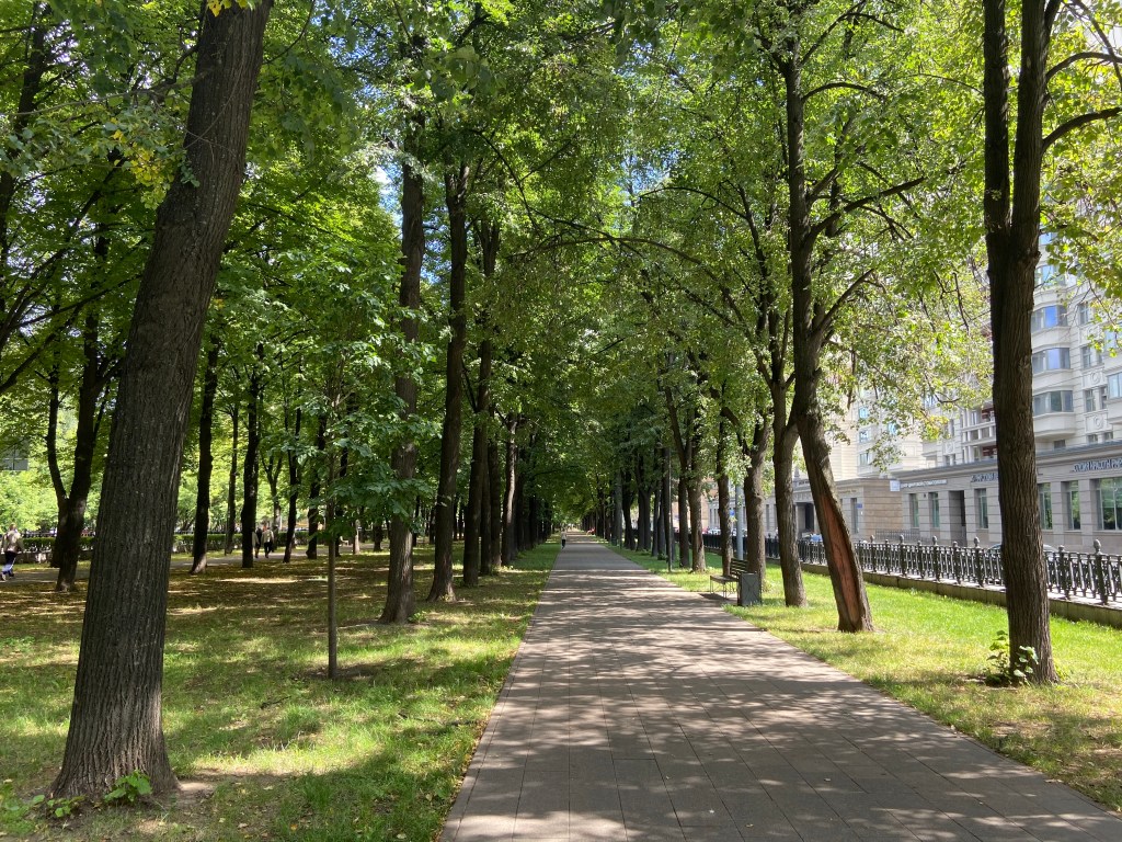 На бульваре всегда людно и шумно, жизнь кипит и бежит куда-то вперёд. Лишь деревья неизменно отражаются в водах пруда. Маршрут трамвая круговой, так что конечной остановки как таковой нет. Трамвай разворачивается и едет обратно к метро Университет.